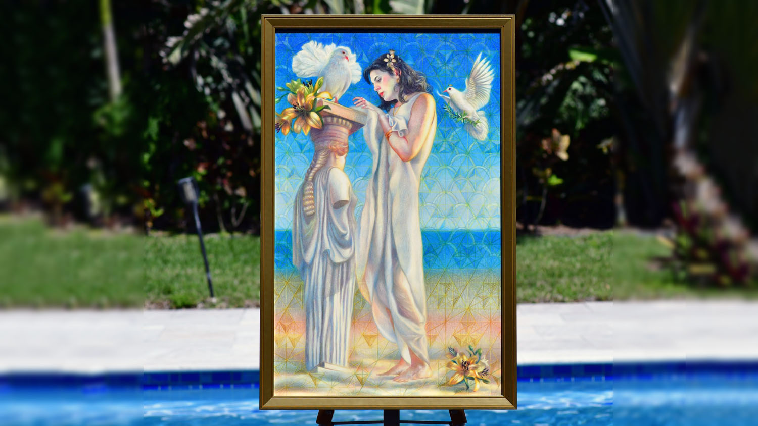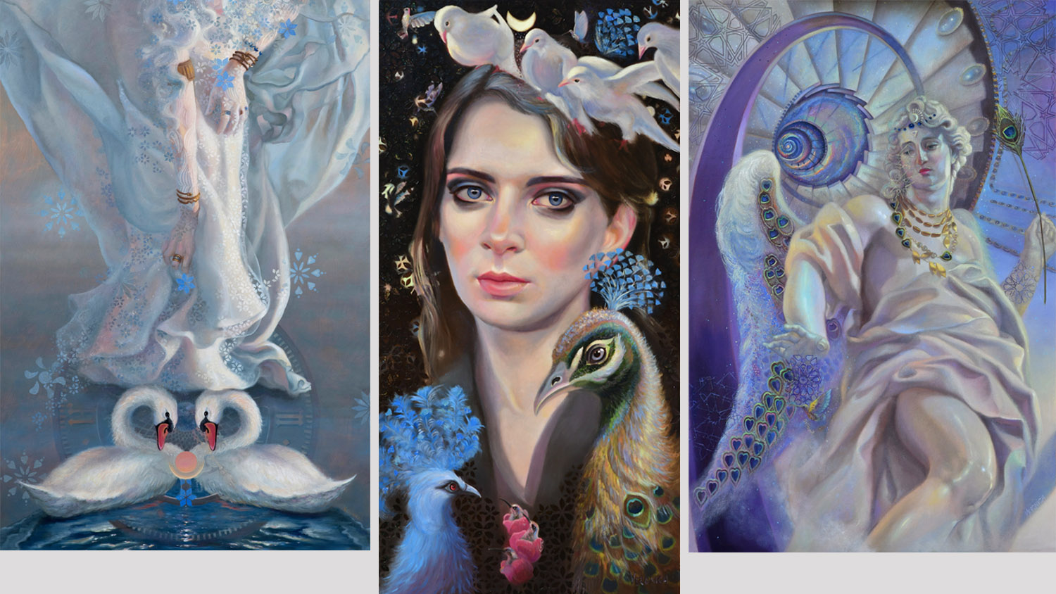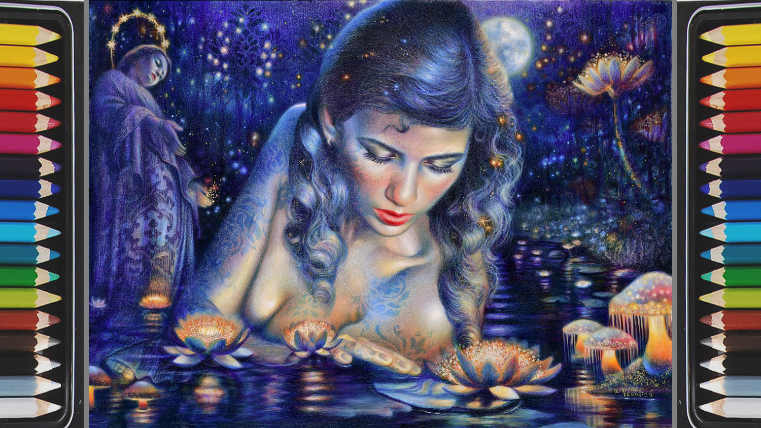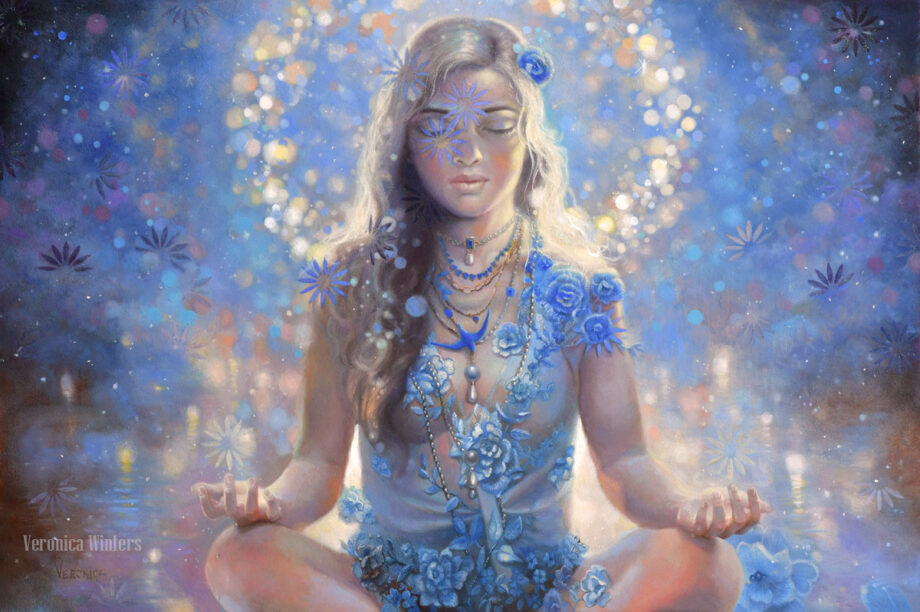 Through figurative oil paintings and colored pencil art, Veronica Winters, MFA, invites viewers into a mystical realm. Using color, form, and symbolism, she explores the profound interconnectedness of all living things in the universe. Her visionary art is an attempt to capture the ethereal beauty, radiant light, and magical power of the Divine, bringing it into our earthly reality as a counterforce to darkness. As a reflection of the Creator, the artist recreates the sincere beauty in our lives, envisioning a world reborn as a vibrant, light-filled, and heart-centered garden.