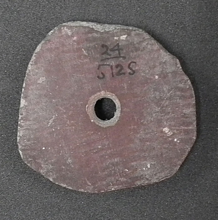 Mica schist is made of mica in layers that has glossy grey hue. It was rarely used in stone vessel manufacturing due to its easy breakage into layers. Mica schist is often mixedup with the green siltstone from the Wadi Hammamat.