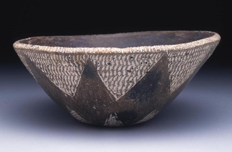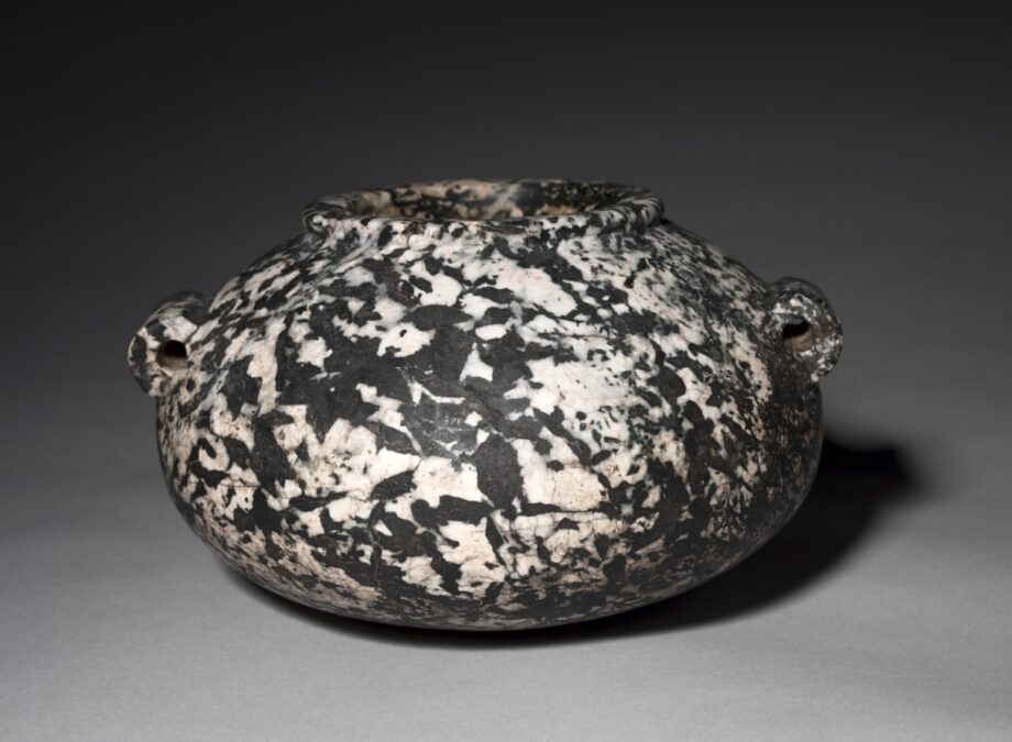 Basalt is a black, volcanic rock that was often called ‘dolerite’ or ‘diabase’ by the British. Predynastic Egyptians used basalt for stone vessels’ production heavily, although its use declined rapidly by Dynasty 4. Manufacturing of small vessels continued in Dynasties 5-6 and almost disappeared after the Old Kingdom. p.21