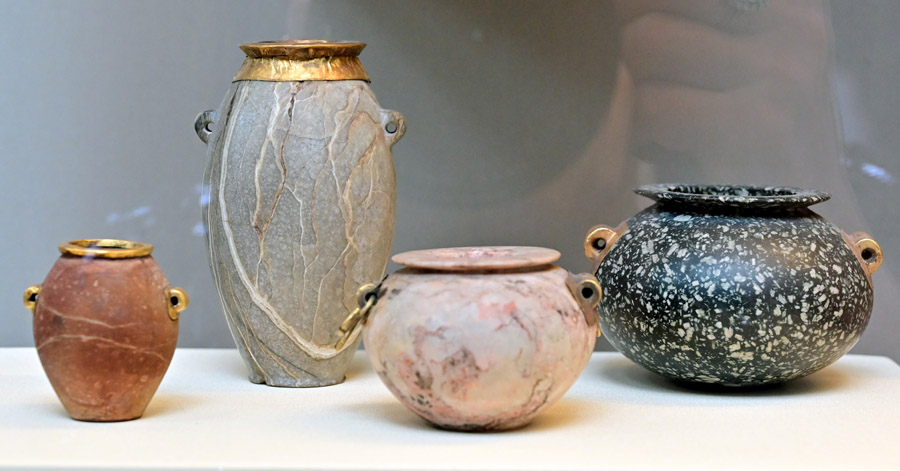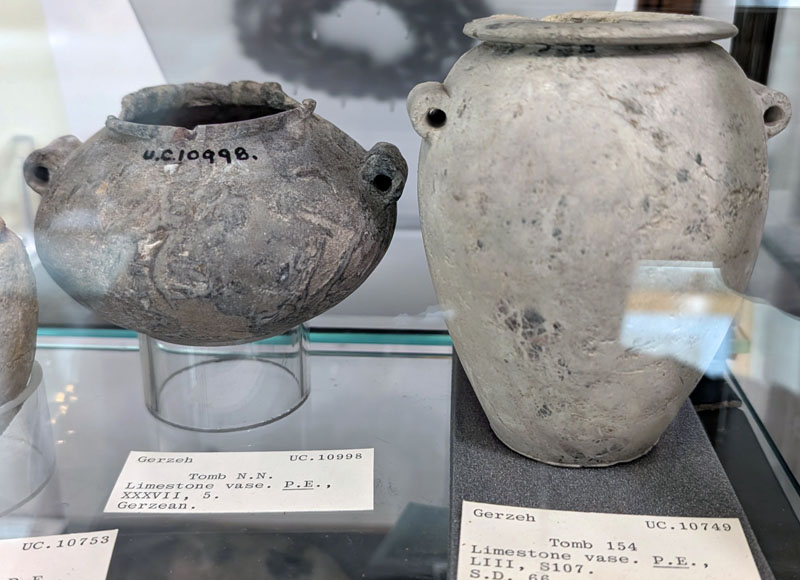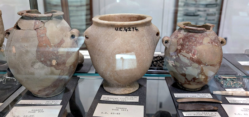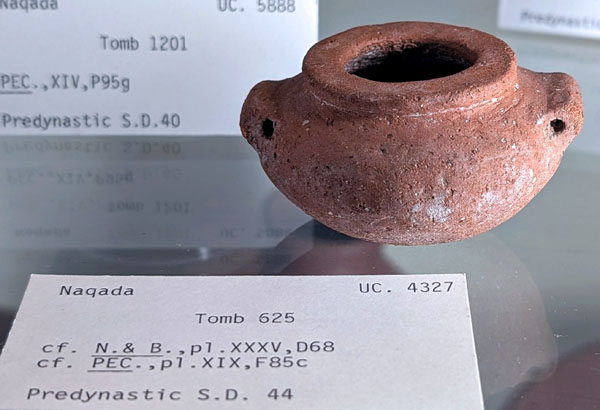 Apparently, siltstone vases were very popular in this time period. Archeologists found 20% of the stone vessels in the royal tombs at Abydos, and over 30% of the vessels from the tomb of Hemaka (temp. Den) at Saqqara. 40% of siltstone vessels in the graves of Dynasty 1 were found in the cemetery of Naga ed-Der. Both the 1st Dynasty Giza mastaba and the Dynasty 1 “M Cemetery” at Abydos had 20% siltstone vessels.