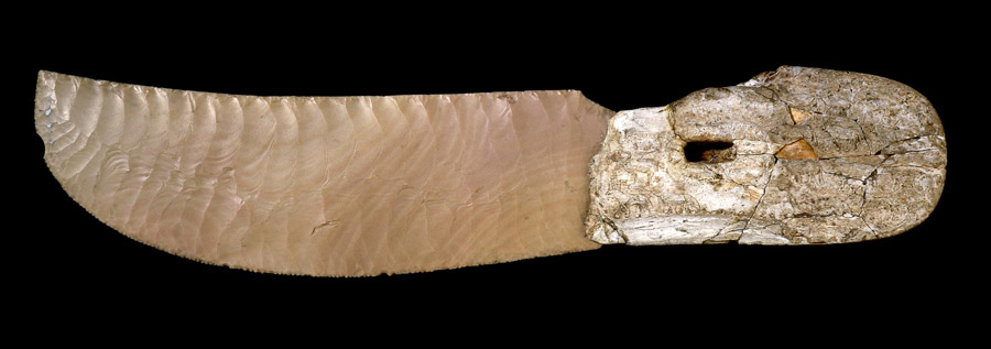 Obsidian: semitransparent obsidian is a black or reddish volcanic glass that differs in translucency. Imported to the country, obsidian was used in knives, amulets, and vases (Obsidian vases appeared in the 1st dynasty, not earlier). “Almost all of the obsidian objects found in Egypt, including all of the stone vessels, are of a jet black variety, which is opaque in the mass and translucent at the edges.” p.25