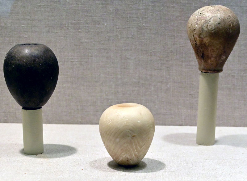 Malachite is a soft stone that has a bright green color. Ancient Egyptians used malachite for eye paint, beads, amulets and even stone vessels, although the author identified only 2 malachite vessels dating from late Predynastic to Early Dynastic periods, and I haven’t seen the malachite vase from Naqada culture in museums.