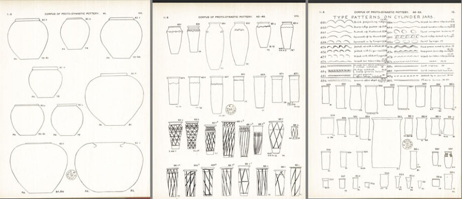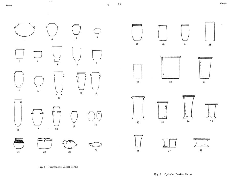 Drawings of forms give straightforward overview of stone production in ancient Egypt, helping establish the dates of the common vessels. This is an excellent reference material to have a detailed look at the ancient Egyptian stone vases to compare them to modern and/or machine-made vases ( if you haven’t seen many examples of Egyptian stone vases in the museums).