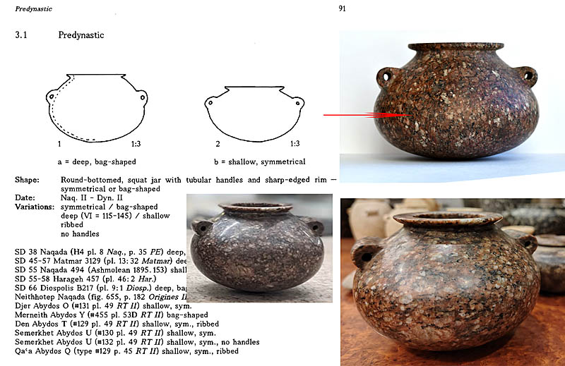 Drawings of forms give straightforward overview of stone production in ancient Egypt, helping establish the dates of the common vessels. This is an excellent reference material to have a detailed look at the ancient Egyptian stone vases to compare them to modern and/or machine-made vases ( if you haven’t seen many examples of Egyptian stone vases in the museums).