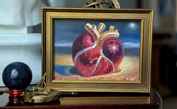 - 5×7 inches, oil and glitter on panel