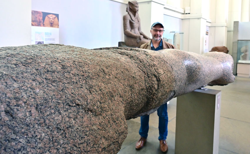 The largest statue in British Museum is of Ramses II, 19th dynasty, 1250BC, EA19, British Museum, Found/Acquired: Ramesseum (Thebes), Doorway, labeled: granodiorite and red granite. 20 ton-sculpture was made of Aswan’s rock. Like other statues, it was originally painted and traces of the paint can still be seen today.
